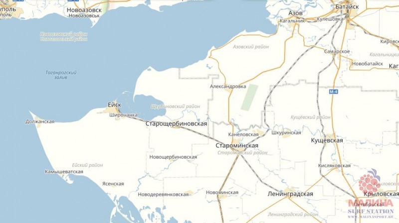 Ейский район. Если вы решили отправиться в путешествие по Краснодарскому краю на личном автомобиле, то советую начать ваше путешествие с Ейского района с города Ейска. Ейский район занимает значительную часть Краснодарского края, примечательными местами в нем являются: Ейская коса, остров Ейская коса, Долгая коса, Камышеватская коса, озеро Ханское. Административным центром является курортный город Ейск, который является пятым по численности населения среди городов Краснодарского края. Ейск является самым северным городом Краснодарского края, поэтому стал обладателем распространенного слогана «С Ейска начинается Кубань» Этот зеленый портовый город расположился между Таганрогским заливом и Ейским лиманом Азовского моря. Вся инфраструктура создана для комфортного отдыха: пляжи, аквапарки, океанариум, дельфинарий, железнодорожная станция, аэропорт, парки с длинными зелеными аллеями.