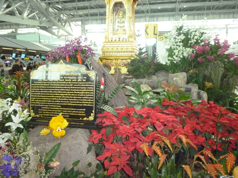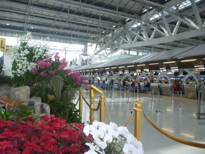 Еще никогда не приходилось преодолевать такие расстояния в аэропортах, как в Суварнабхуми. Да, аэропорт больше напомнил город. Причем не только по количеству самолетов, людей, но и цветов. Впервые увидела множество цветочных композиций из орхидей.