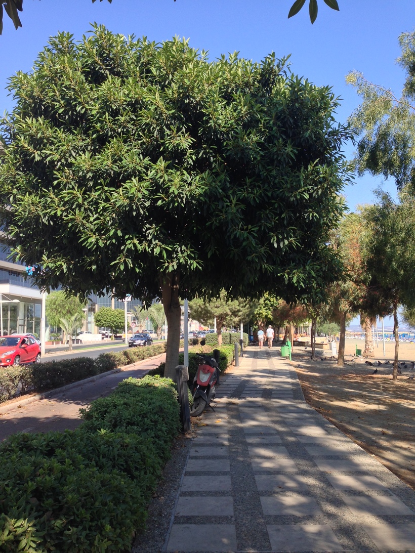 Наверняка, вас заинтересует, почему она так называется? Оказывается, фашистская Италия желала видеть Кипр своим союзником в войне и предложила сотрудничать, но в ответ получила твёрдый отказ. Случилось это 28 октября 1940 года. «Нет» по-гречески звучит как «Охи». И с тех пор киприоты празднуют национальный праздник «Охи», и свою главную набережную назвали в честь тех памятных событий. Мы с мамой очень любили прогуливаться по улице «28 октября». Она очень оживленная. Тут и люди гуляют туда-сюда, и велодорожки есть, и лавочки стоят. Можно любоваться морем с одной стороны, и заходить в разные ТЦ по пути, которые стоят вдоль дороги. По тропинкам этой улицы иногда бродят павлины, а ещё тут устраиваются фестивали вина. И не забывайте смотреть под ноги - там много интересных и красивых рисунков.