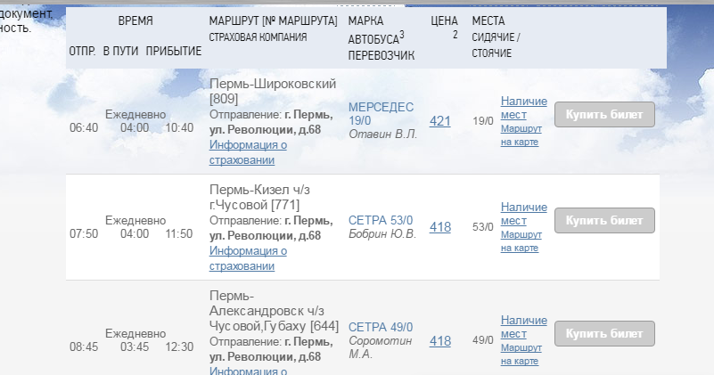 - от автовокзала Перми до автовокзала Губахи стоимость билета резко растет. Обойдется он вам в 420 рублей;