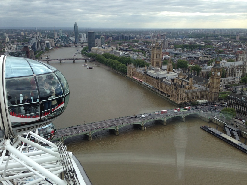 Колесо обозрения – это, конечно, достаточно банальный аттракцион для туриста. Но «Лондонский глаз определенно стоит того. Всем советую увидеть Лондон и его окрестности с высоты птичьего полета (лондонские чайки, мне кажется, все же на такую высоту не поднимаются). В гиде говорится, что можно осмотреть город с высоты на расстоянии до 40 км, но помните, что это только при ясной погоде, а она здесь не всегда такова. Кабинки закрытые с прозрачным стеклом и вмещают около 20-25 человек. Места в них много, и вы можете осмотреть окрестности со всех сторон. Только приезжайте не сильно поздно. Мы первый раз приехали к 19, так как были уверены (прочитаны многие ресурсы), что колесо работает до 20, а оказалось, что часы работы с 10 до 18. Скорее всего, в разное время года часы работы разные. Так что лучше уточняйте на официальном сайте или приезжайте днем. Придется отстоять очередь в кассы и потом еще на вход в кабинки, но вы не пожалеете! Вид на Лондон просто потрясающий!