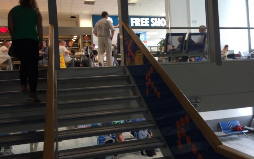 В аэропорту очень жарко. Бесплатные фонтанчики с водой? Не-а, не слышали! Даже купить холодную воду негде.