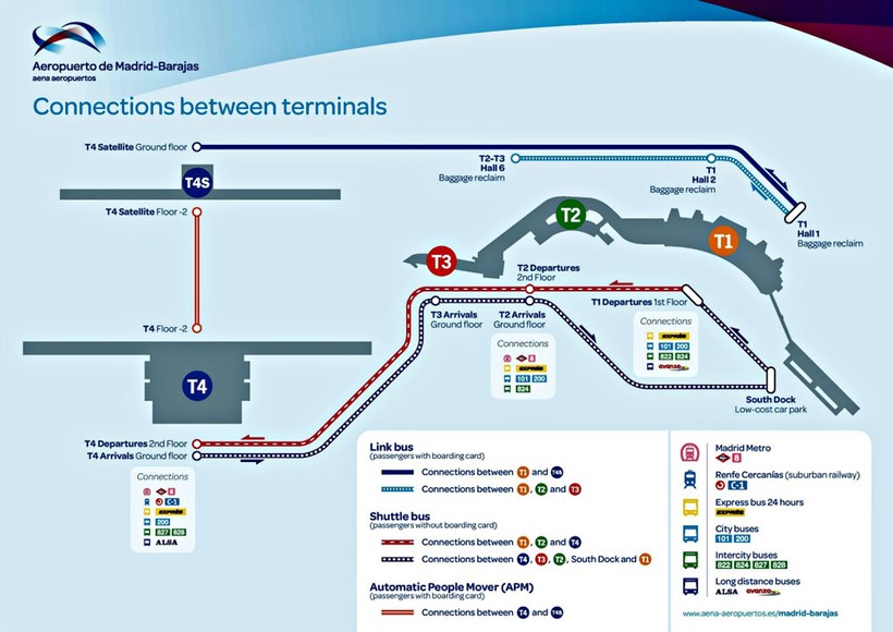 Расстояние от центра Мадрида до аэропорта всего 12 километров. До города я предпочитаю добираться на автобусе, который отправляется с остановки от терминалов. Помимо этого, есть возможность доехать за 25-30 минут на поезде или метро, станции расположены здесь же.