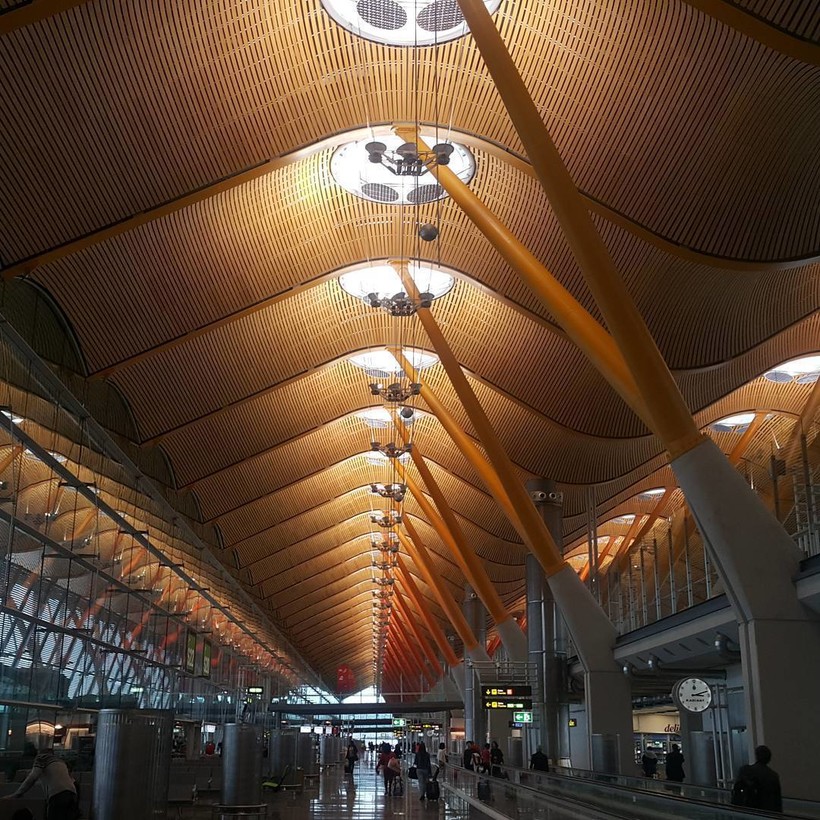 Четвёртый терминал был открыт в 2006 году, его придумал британец Ричард Роджерс, причастный также к таким известным проектам, как Центр Помпиду в Париже и Европейский суд по правам человека в Страсбурге. Но здание терминала 4 мадридского аэропорта лично мне понравилось даже больше. Его фишка — волнообразная крыша, поддерживаемая разноцветными Y-образными колоннами, — создаёт ощущение лёгкости и воздушности. Как раз то, что нужно небесной гавани!