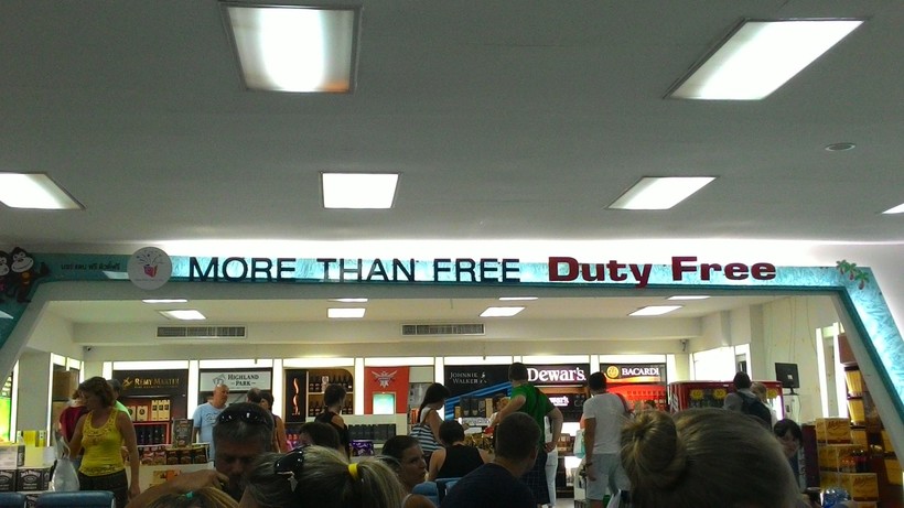 Я, как турист, всегда планирую на обратную дорогу посещение магазинов беспошлинной торговли. Мне нравится покупать в них косметику, парфюмы, игрушки. Но когда я увидела в У-Тапао магазин, состоящий из 2-х, возможно из 4-х полок я была в шоке. Естественно, разговоров о туалетной воде и косметике вообще не было.