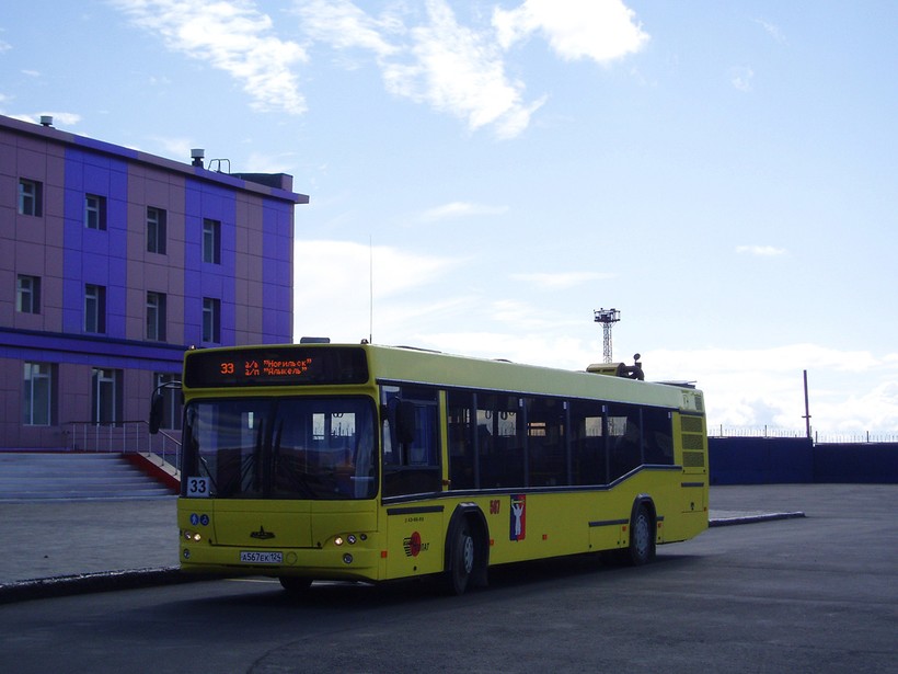 Прежде всего, вам необходимо добраться до города, а вы помните, что находится он в 50 километрах от аэропорта. Прямо у выхода из аэропорта находится автобусная остановка. На ней вам необходимо сесть на автобус №33, который вас довезет до автобусной станции «Норильск». Автобус от аэропорта отправляется ежедневно, правда, не так часто: 06:50, 07:20, 09:20, 10:20, 12:20, 14:20 и 16:20. Время в пути занимает 40 минут, если ехать зимой, тогда около часа.