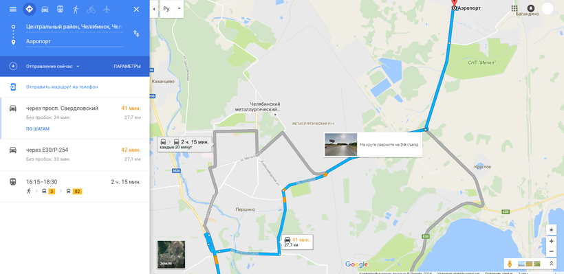 От аэропорта до центра Челябинска едем по дороге мимо посёлка с говорящим названием «Аэропорт» по прямой (на круге сворачиваем на правый съезд):