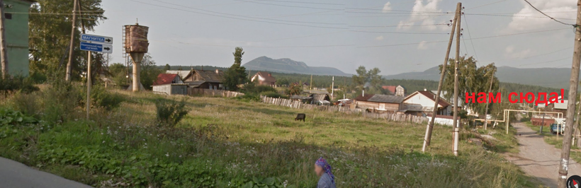 Конечная остановка - п. Пушкинский:  Обернитесь - и вы увидите указатель на Таганай. Придется протопать около 800 метров: