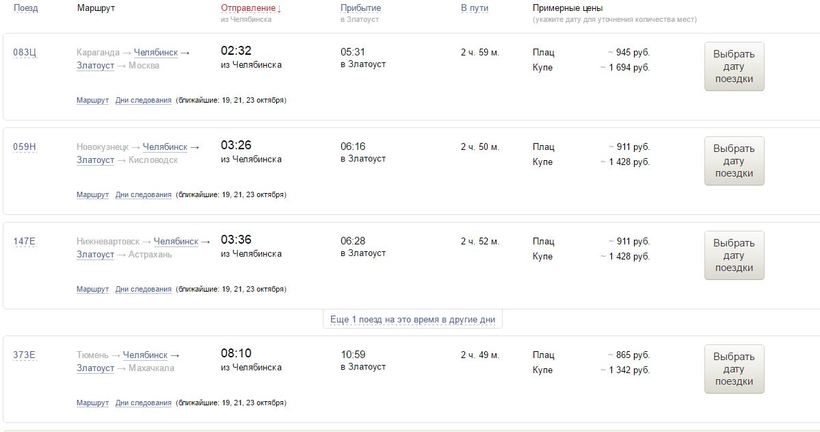 В среднем билет до Златоуста обходится в скромные полторы тысячи рублей. Путь занимает около трёх часов.