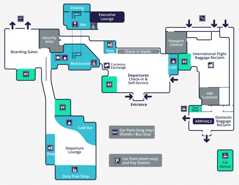 Сам по себе аэропорт Эксетер снаружи выглядит очень уж скромно и как-то совсем не впечатляет. Я бы даже сказала, разочаровывает. Когда едешь в главный город графства Девоншир, явно ждешь чего-то более грандиозного) Хотя внутри все очень даже симпатично и чисто, "по-европейски") Этаж всего один, но тут вмещается все нужное и ненужное: после перелета вы сможете перекусить в уютных кафешках, в баре или даже в ресторане, есть также парочка магазинов, в которых можно купить кучу всего, начиная с книг и заканчивая косметикой)
