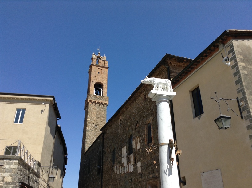 Есть в Монтальчино дворец - Palazzo dei Priori. Жили там раньше монахи, которые заведовали местными делами Божьими. Сейчас в этом здании находится ратуша, его легко определить по высокой колокольне, которая одиноко возвышается над старым городом. В этом здании находится офис Бюро по туризму Италии. Девочки бесплатно вам помогут с любой информацией, относительно города, экскурсий, как пройти в супрмаркет и где купить билеты на автобус. Открытки, правда, за деньги продают. Но о деньгах - в отдельном посте про валюту.