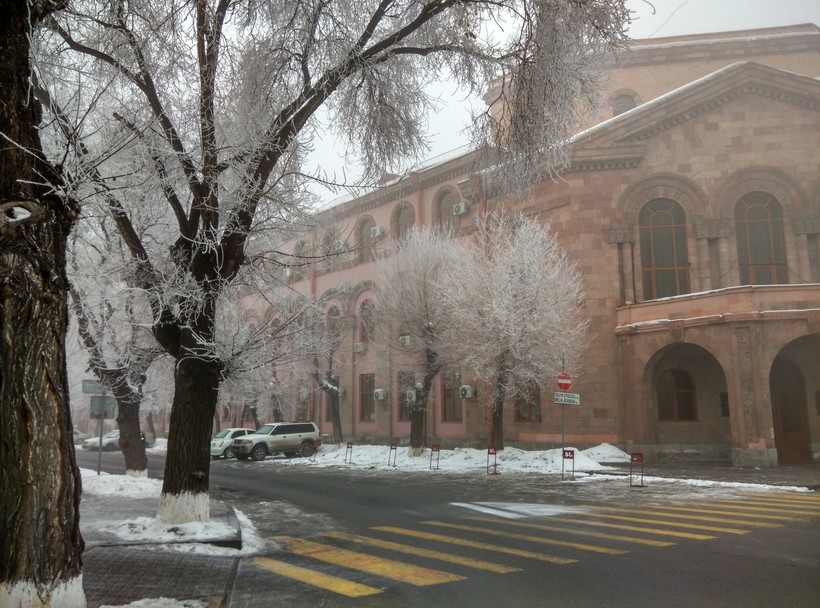 В январе 2017 года в Армении температура ниже 0. Днем она от –5 до –1, а ночью –10...–14. Ветер не дул, но было влажно. Здесь горный резко-континентальный климат с жарким и засушливым летом и морозной зимой. Ехать в эту страну лучше в период с мая по сентябрь, в новогодние каникулы холодно.