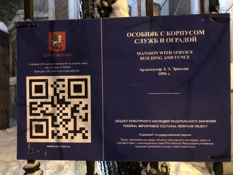 чтобы знакомство с архитектурой Москвы было интересным и познавательным всем рекомендую использовать ресурс узнай Москву. https://um.mos.ru/ ресурс создан при поддержке правительства Москвы и позволяет Вам узнать как можно больше об истории Москвы, ее ключевых архитектурных шедеврах и просто интересных местах. Использовать можно как сам сайт напрямую, так и переходить на него именно там где вы встречаете вот такие таблички .