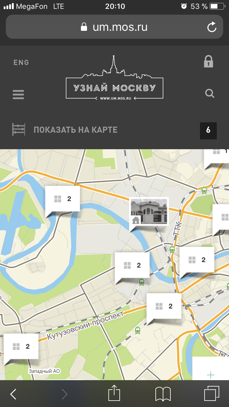 Сайт очень удобен в использовании. При открытии карты можно посмотреть что ещё находится рядом и составить самостоятельный интересный маршрут.