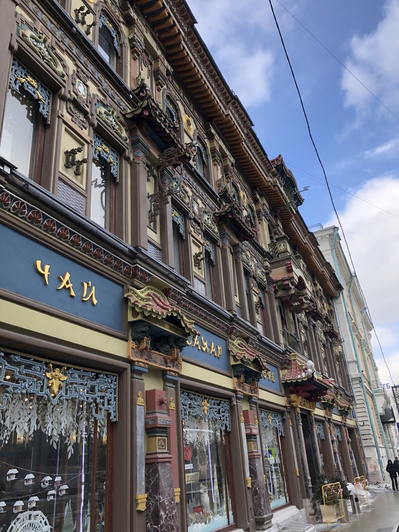 интересным зданием для осмотра будет Китайский чайный дом на Мясницкой. Был построен для чаеторговца Перлова в 1890 году. Около 5 лет назад закончилась реставрация и теперь дом радует своим внешним видом прохожих. В магазин можно кстати зайти за редким чаем или кофе , а так же посмотреть на красивый интерьер и китайскую посуду.
