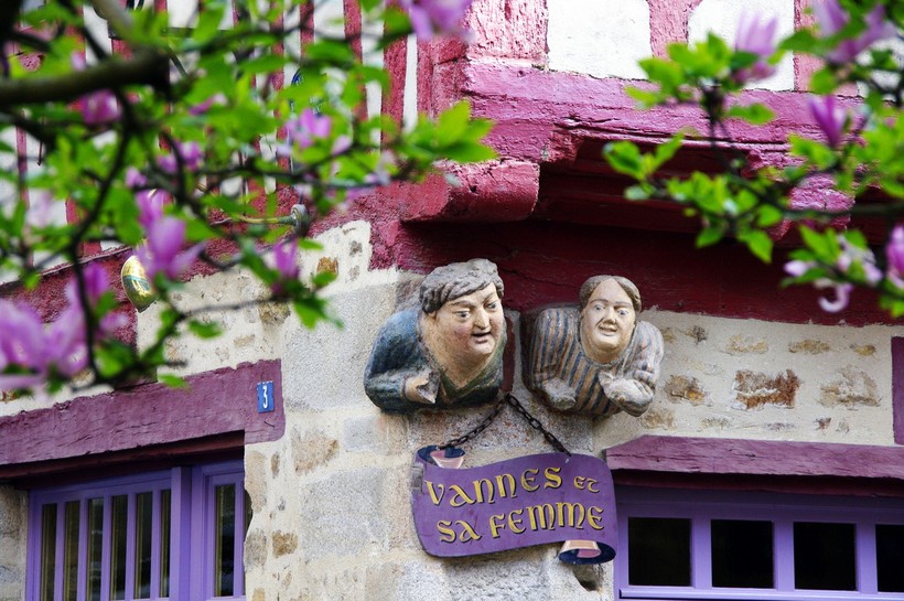 Ванн мы посетили в рамках нашей «Большой прогулки по Франции». Организовали мы ее для себя сами, хотя маршрут скопировали в одном из турагентств (честно признаюсь к своему стыду). Изначально Ванн не входил в этот маршрут, в Бретани мы должны бы ограничиться посещением «города корсаров» Сен-Мало, а дальше ехать в Анжер. Но прелесть самостоятельных путешествий как раз в том, чтобы самим и составлять маршруты, и менять по своим прихотям. В итоге мне все-таки удалось втиснуть Ванн, не могла же я упустить шанс найти поразившую меня пару лет назад в одном журнале вывеску-скульптуру «Лейтенант Ванн со своей женщиной».
