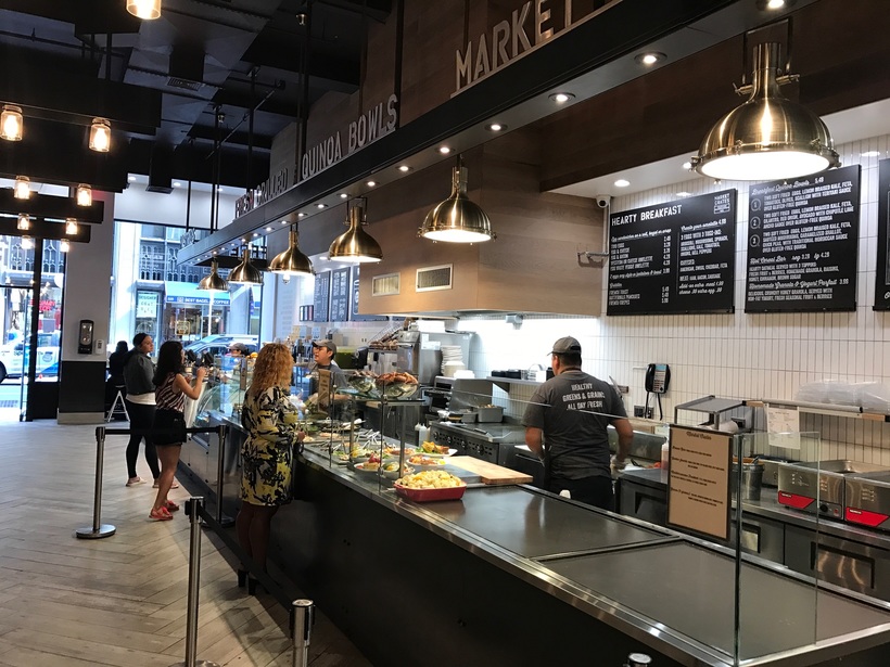 - В Нью-Йорке много мест с готовой едой на вынос. Что-то на подобии шведского стола, где вы обычно платите за вес еды. В отличии от фаст фуда тут уже можно найти более приятные и привычные варианты в виде риса, лапши, овощей итд.