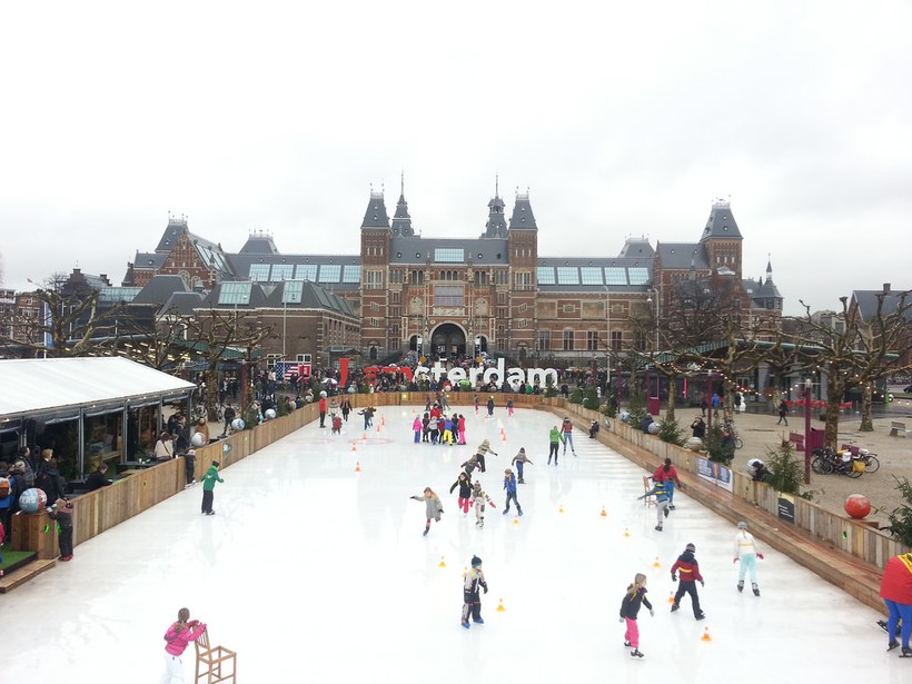 Долго печалиться не в моем характере, решила срочно заняться своим зимним голландским досугом и отправилась к огромным буквам «Я люблю Амстердам» в Иэмстер. Там заливают огромный ледовый каток, замерзнуть на нем невозможно. Всем заледеневшим рекомендую больше двигаться.