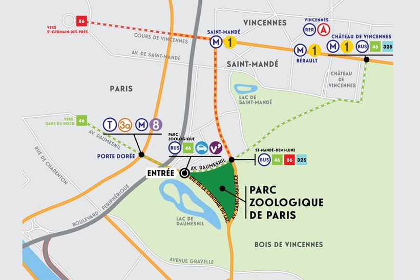 Пришлось брать инициативу в свои руки. И продолжили мы наше рандеву в зоопарке, он же Parc Zoologique de Paris. Вот сразу добавляю его расположение на карте. Стоимость билета для взрослого – 22 евро, для ребенка – 14.