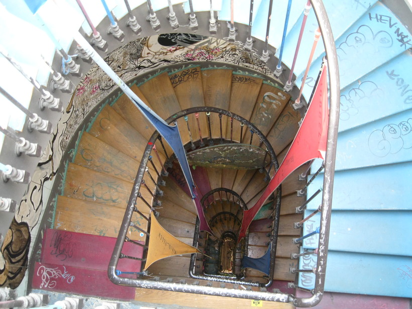 С каждого этажа открывается просто роскошный, захватывающий дух пейзаж. На самом верху все забрано металлической решеткой. Оказывается, самое романтичное строение в мире являлось раньше любимым местом самоубийц. Поэтому пришлось принять меры безопасности.