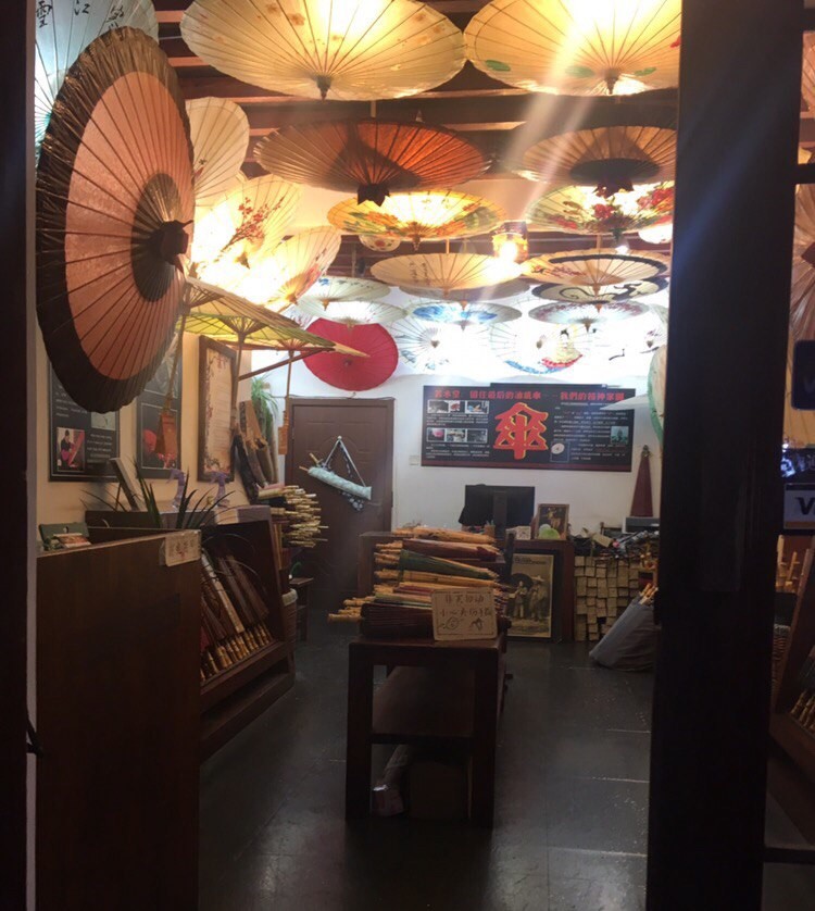 К слову о консультантах – этот магазин одно из немногих мест, которые я посетила в Пекине, где говорят по-английски и, при этом очень хорошо. Продавщица очень подробно рассказала о процессе изготовления зонтов, о том, как за ними ухаживать (по возвращении домой посыпать детской присыпкой) и, в общем и целом, была очень учтивой и дружелюбной. На зонты распространяется пожизненная гарантия – если он сломается, его можно отправить на родину в мастерскую для починки. Зонты стоят от 180 до 280 юаней в зависимости от размера и дизайна. К зонтам можно купить чехол, чтобы носить за спиной.