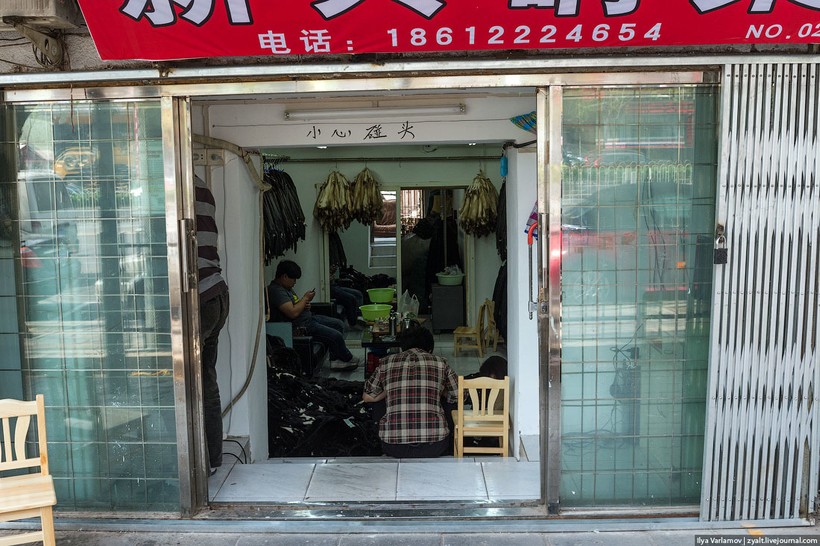 Русский квартал — это целый район одних только торговых центров, ориентированных на российского потребителя. На всех стенах домов, на каждом ларьке, витрине, переносном рекламном щите пестрят вывески на русском языке, местами на таком корявом русском языке из машинного переводчика с китайского, что это стало уже поводом для бесконечных шуток. Я и тогда, и сейчас не могу понять, почему до сих пор местные предприниматели не нашли для сотрудничества хотя бы одного русскоговорящего человека, который помог бы им составить грамотно текст.