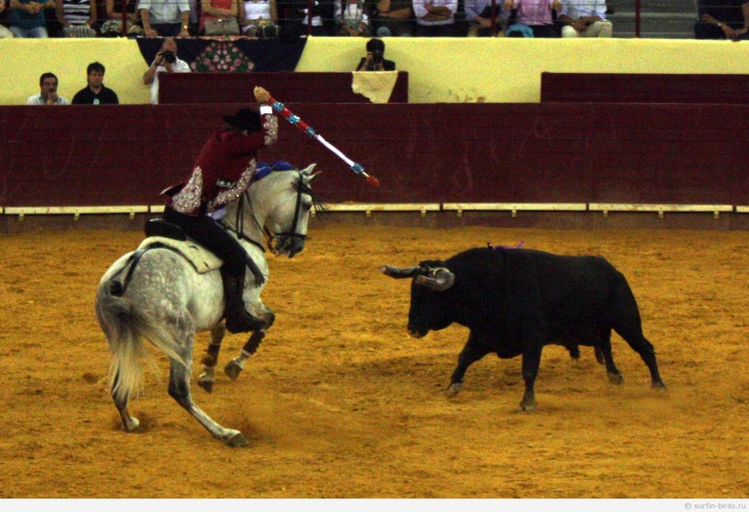 25 апреля по всей Португалии отмечают День Свободы. Это самый главный государственный праздник, и конечно же мы отправились на торжество. Веселье не смолкало до ночи. Прогулявшись по городу, где везде играет музыка, проходят какие то инсценировки событий антифашистской Революции красных гвоздик, мини шествия, мы отправились на корриду. И это совсем не та кровавая коррида что в Испании, так что я спокойно повела туда свою дочь. Кабальеро, верхом на коне сражался с быком, было очень красиво, и самое главное, что меня порадовало, что в португальской корриде бык остался жив. Насладившись зрелищем, мы отправились в отель.