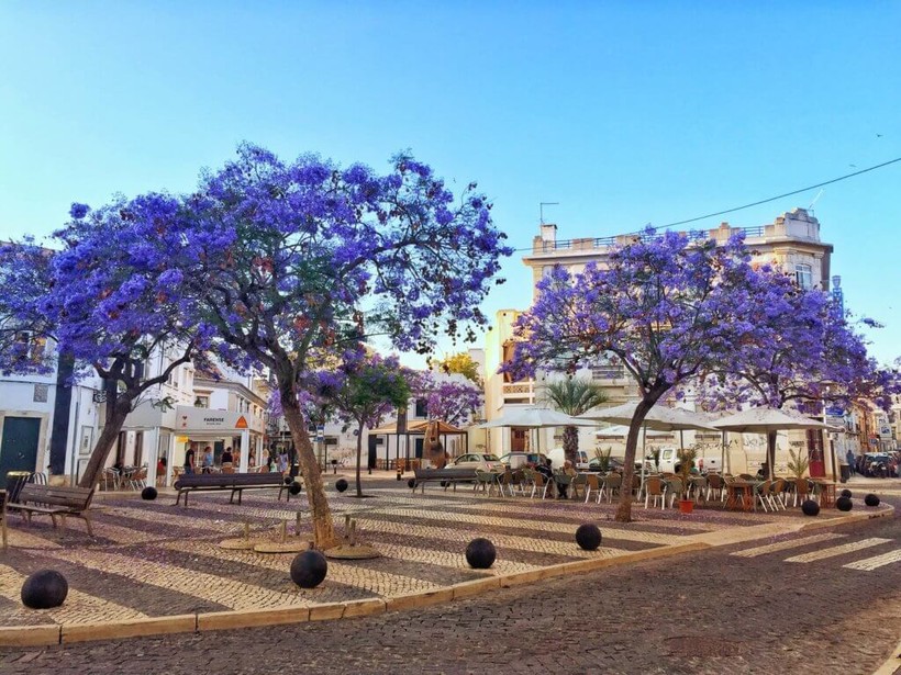 Есть в Фару кое-что, ради чего я готова возвращаться весной вновь и вновь. Это жакаранда, дерево которое в мае зацветает ярко синими и фиолетовыми цветами. Температура существенно не менялась, колебалась от +16 до +21 днем, и не опускалась ниже отметки в +13 ночью. Небо, глубокого синего цвета, украшали редкие облачка.