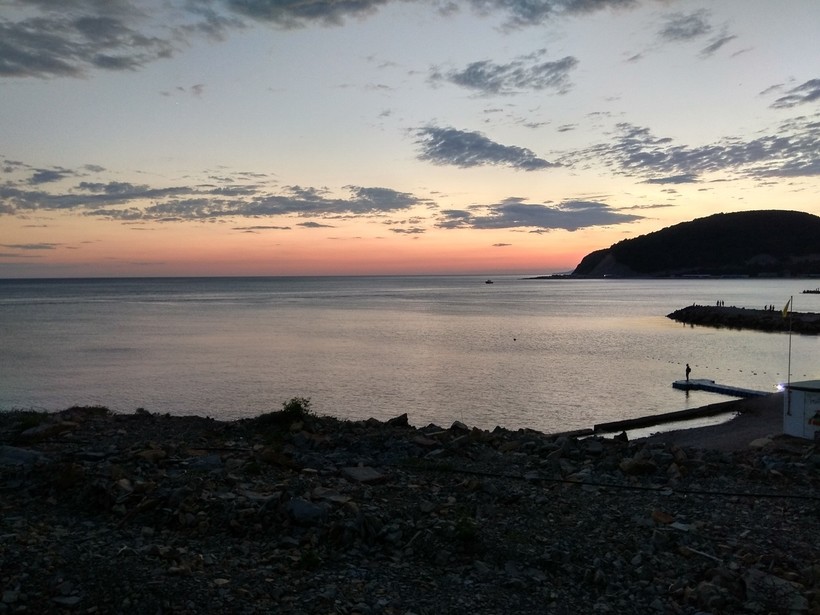 Вода в Черном море была теплее воздуха. Ее температура варьировалась в пределах +8..+10 градусов. Зимой было здорово сидеть на пустынном пляже и бросать камешки в море. Джубгские пляжи — песчано-галечные.