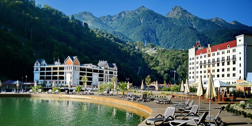 - посетить искусственное озеро с лежаками и баром на «Розе Хутор» — в мае самое время начинать пляжный сезон;