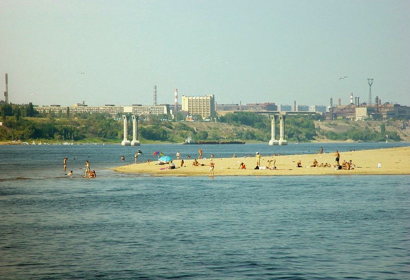 Жара в Краснослободске стояла неимоверная: сразу отмечу, что мы там оказались в середине июня, но уже в это время там было – не соврать – градусов 30. Чистейшее небо без единого облачка, палящее солнце, жаркий (и достаточно сильный) ветер. Кстати, если бы не ветер с Волги, то было бы вообще худо. В общем, самая что ни на есть пляжная погода. Нам, вспотевшим за пять минут без кондиционера в машине, купаться было крайне необходимо. Надо сказать, что народ местный нас в этой идее поддержал и, стремительно скидывая сарафаны и шорты, вместе с нами бежал в воду. Не смотря на то, что день был будний, было ощущение, что вообще все краснослободчане и волгоградцы пришли посидеть в воде. Впрочем, если не брать в учет прекрасный песок и чистую Волгу, само место пляжем можно назвать с большой натяжкой. Ибо грязновато, товарищи. Хотя вода, надо отметить, чистая и прозрачная, с хорошим плавным заходом и отсутствием водорослей. А еще вода в июне (в середине июня – это важно!) достаточно теплая – нет, давайте скажем, что относительно теплая, так вернее. В августе, наверное, парное молоко…. А еще с этого пляжа открываются лучшие виды на центр Волгограда, набережную, Мамаев Курган и Родину Мать. Так, для галочки.