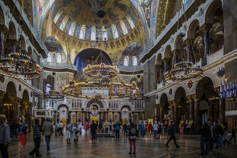 Паром на остров плыл заполненный на 2/3 или чуть меньше. Не могу сказать, были ли то местные жители городка или туристы. Скорее всего, местные. В городе не обнаружено никакого наплыва туристов – но народ прогуливался около Морского Никольского собора, главной достопримечательности города. Полагаю, летом и в выходные народу в Кронштадте бывает куда больше, чем вечером в не слишком солнечный будний день мая.