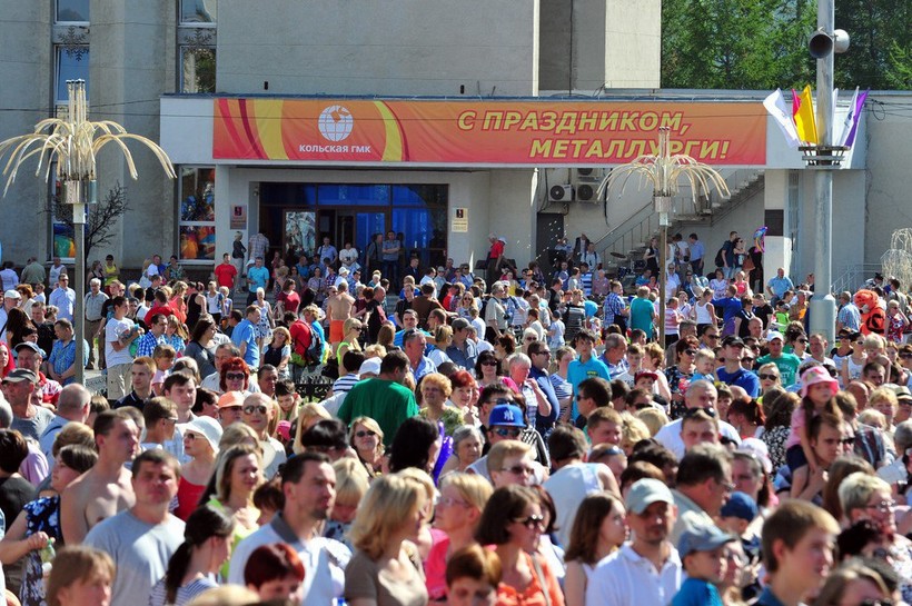 В Мончегорске главным праздником июля является "День Металлургов". Именно ему город посвящает пышную праздничную программу, которая растягивается на несколько дней. Очень насыщены эти дни самыми различными мероприятиями. Это спортивные соревнования, велозаезды, эстафеты, футбол, баскетбол и многое, многое другое, связанное с портом. А также проходят самые разнообразные культурные выступления и творческие выставки. На улицах можно увидеть все: начиная с шоу мыльных пузырей и заканчивая представлениями ростовых кукол и фотоквестов. Весь город в эти дни оживает, жителей как никогда много на улице, и все энергично стараются принять участие в проходящих конкурсах и поглядеть на уличные выступления. В этот праздник также проводится концерт на главной площади, на который приглашают звезд эстрады, и в завершение выпускают в небо шикарный салют. Мы там присутствовали, зрелище действительно классное, народу было очень много)
