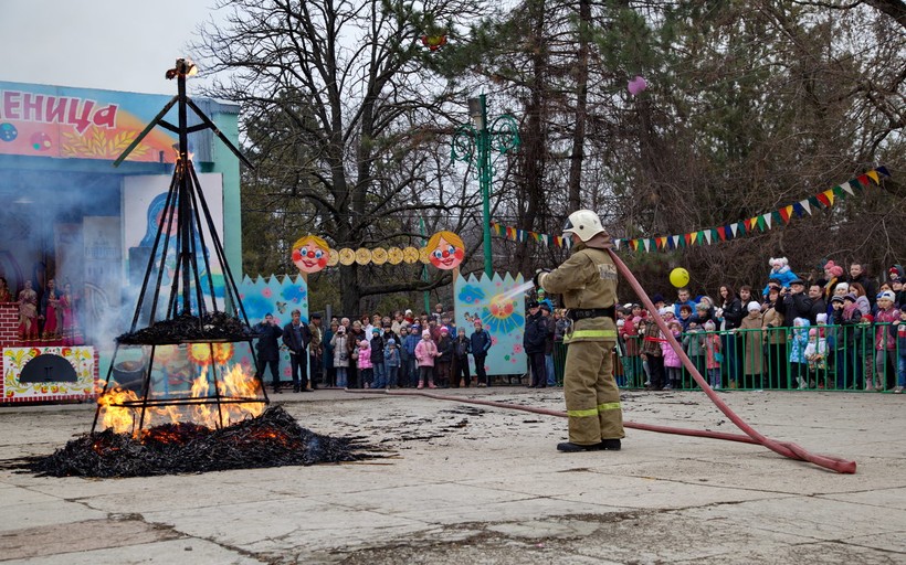 В первом месяце весны очень часто выпадает масленица и, само собой, 8 марта. На масленицу в городе проводят традиционные гуляния и обряды, раздают блины, открывается множество точек уличной еды. Хотя в последние годы как-то все стало слишком формально и скучно: например это фото пожарного, который заливает горящее чучело зимы - отличная иллюстрация вмешательства властей в народный праздник.