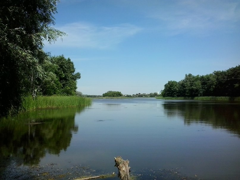 А перед Хопрём, ближе к городу (или даже в черте города) есть какое-то вытянутое озеро - очень милое, хотя и заросшее камышами. В нем с удовольствием плескались городские мальчишки, ну, а мы не плескались, хотя, судя по всему, вода в озере уже очень теплая. Прогревается быстро при такой-то жаре…