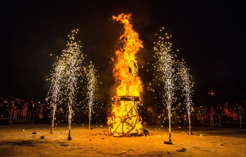 Было много веселых конкурсов, например, колка дров на скорость, игра «Кто быстрее съест блины», соревнования по разведению костров и многое другое. Я даже была удостоена сертификата «Много блинов съел». Кульминацией, конечно, стало сжигание чучела-зимы.