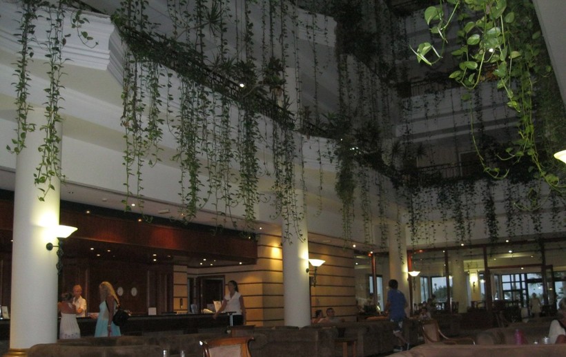 Сами отели в Протарасе имеют довольно простую архитектуру. Мне они вообще казались похожими на типичные многоэтажные, жилые дома. Гостиница, в которой мы сначала остановились, называлась Отель Анастасия. Если снаружи фасад не представляет собой интереса, то внутри - очень красивый, я бы сказала даже, шикарный холл. В нем, с каждого этажа, свисают растения (я в ботанике не разбираюсь, поэтому не знаю их названия). Сам по себе этот отель - очень классный и комфортабельный.
