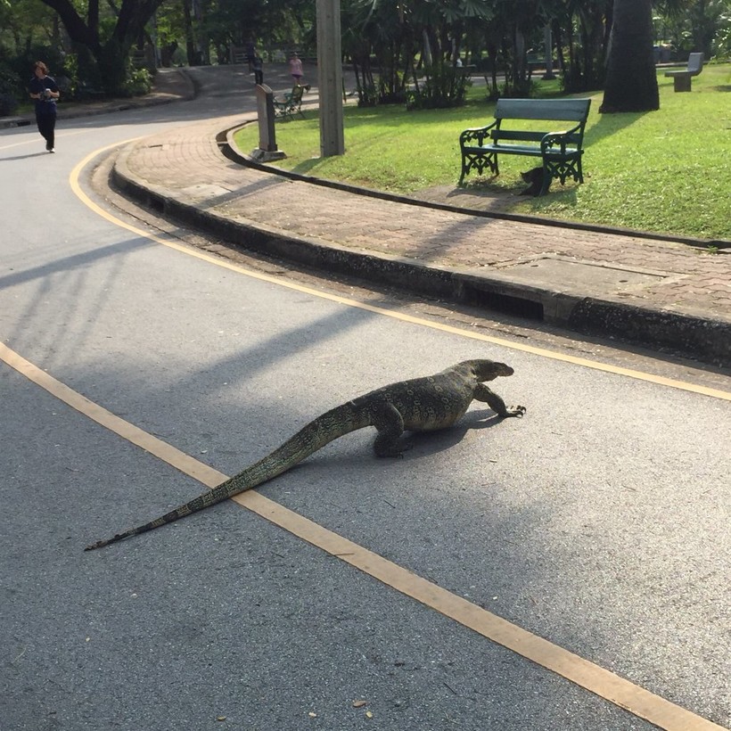 Гуляя по парку будьте готовы повстречаться с представителями фауны. Рептилии размером с небольшого крокодильчика выходят из воды, и смело отправляются покорять пешеходные дорожки или нежатся в траве. Ящеры не опасны, но и налаживать тесные связи с ними не нужно.