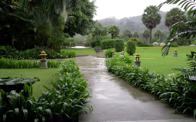 Влажность в этот период довольно высокая - первые несколько часов после прилета реально тяжело дышать.Но это ощущение очень быстро проходит. Температура воздуха - высокая, иногда даже очень. Такое ощущение, что днем до +40С жара была. Дожди бывали, но не часто и ненадолго. Особой свежести они не приносили, т. к. на улице жарень, но и неудобств от этого не почувствовали - все-таки мы в Азии.