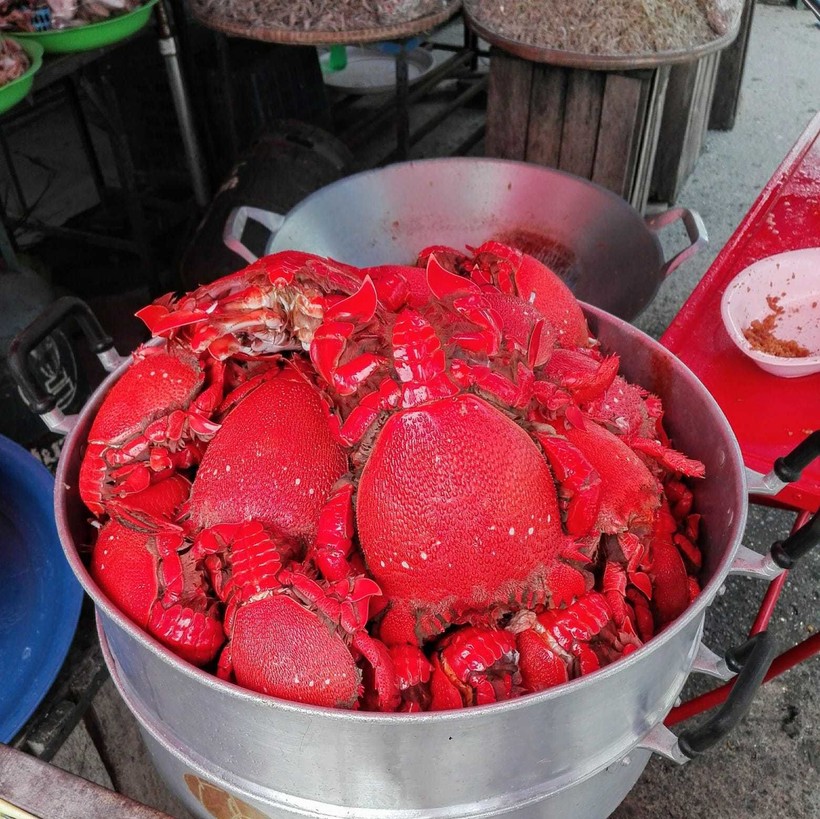 Краб, тот что на фото , стоит всего 50 бат. Мясо в нем много, взрослый человек может наесться одним крабом , правда при еде придется использовать молоток - для того чтобы разбить панцирь. Размер этого краба около 35 см., жалко что я мало сделала фотографий, не знала что за диковинку есть буду.