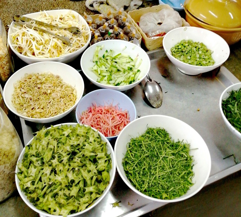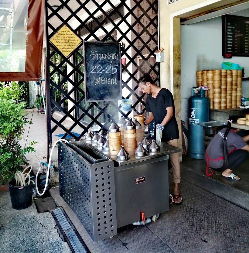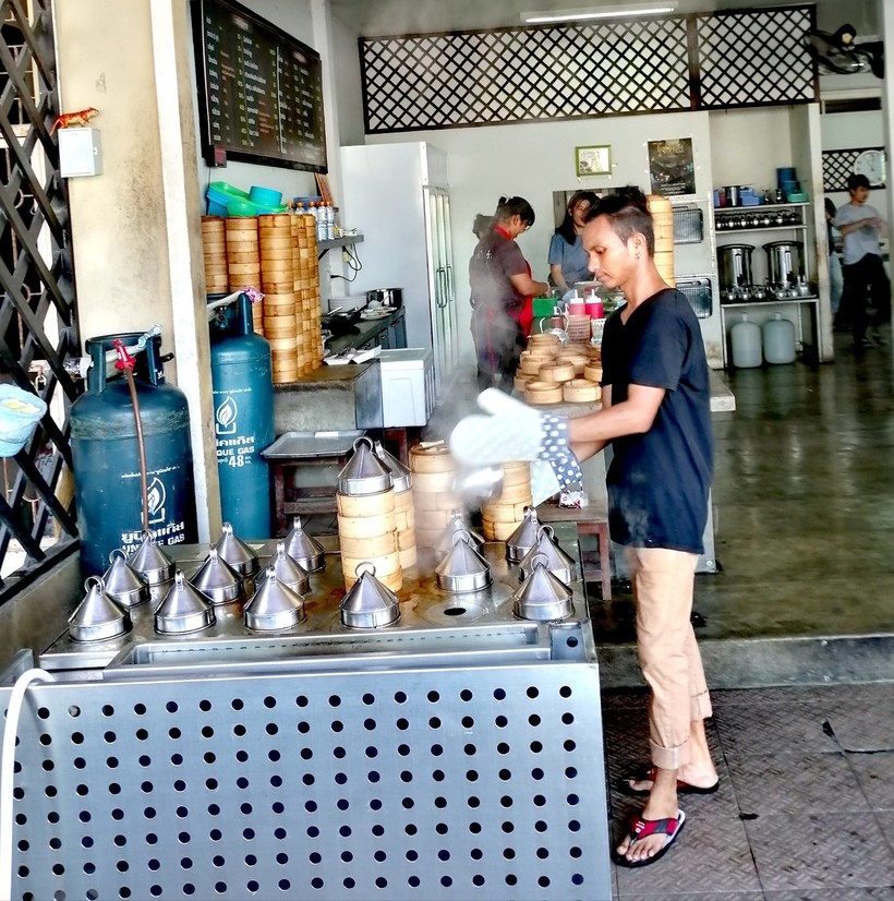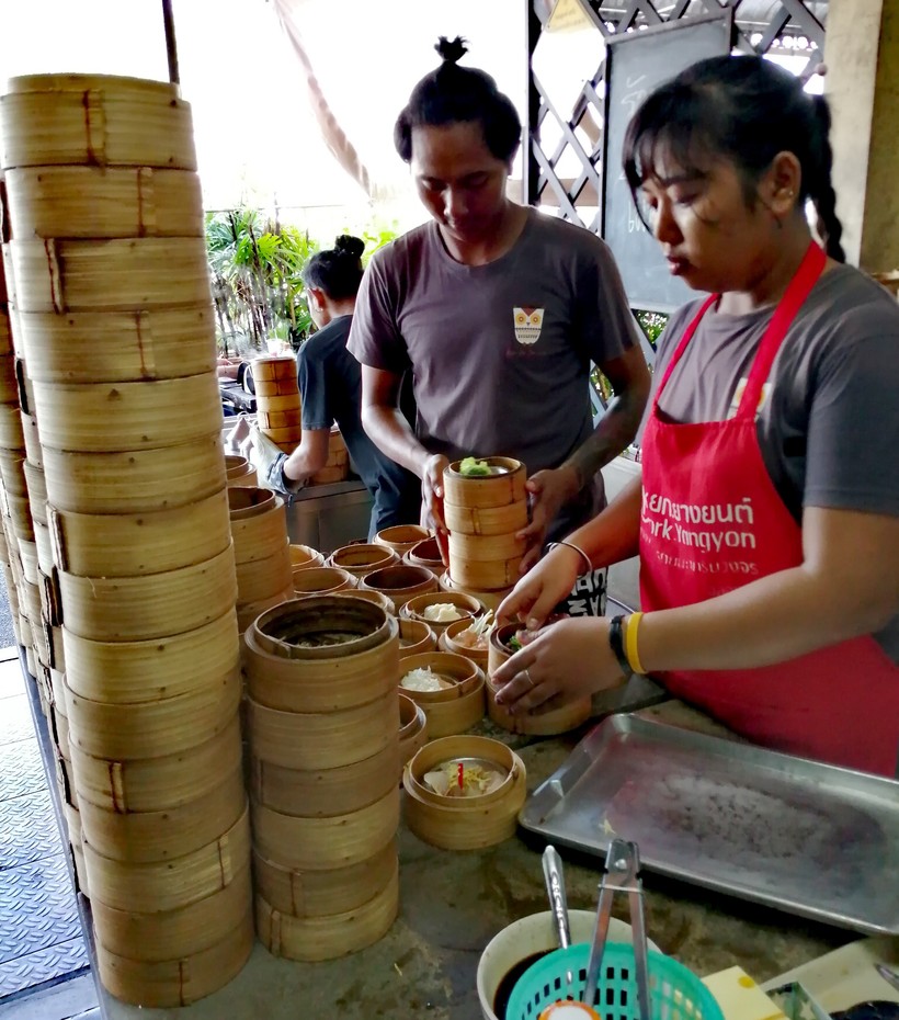 Здесь мои тарелочки разложили по бамбуковым лукошкам и поставили готовить. Время приготовления - 5минут. Стоимость 1 порции - 20 бат.