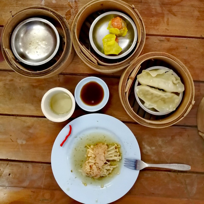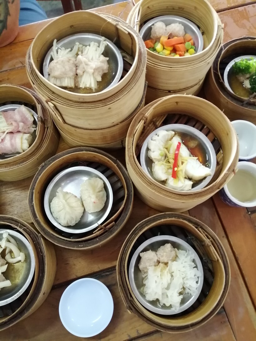 Как правило, порции небольшие - 2 штуки каких - либо закусок. Как и везде в Таиланде, пробовать надо все. Поэтому мы выбрали по 7 тарелочек тех блюд, которые приглянулись нам внешне. Названия блюд нам ни о чем не говорили. Мы вообще столкнулись с кантонской кухней впервые.