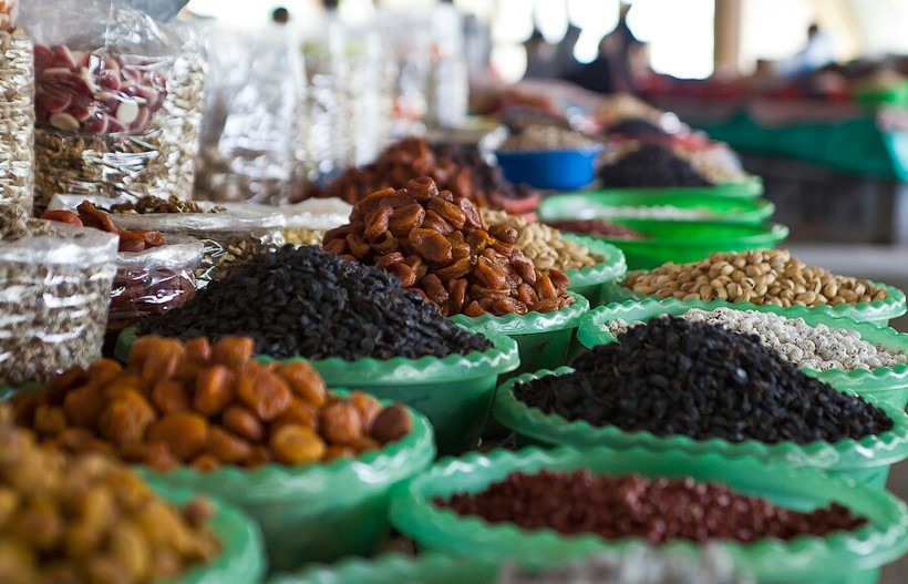 Главной гордостью Ферганы являются фрукты и ягоды. Город можно сравнить с таким своеобразным фруктовым раем. Покупать их стоит только на базаре. Он, кстати не слишком многолюдный и довольно чистый. Посетить его желательно рано утром. В июне во всю уже продавали арбузы, но я поостереглась их покупать, как не уговаривали меня местные продавцы :) Зато с большим удовольствием наедалась клубникой, хоть пик ее созревания уже и проходит, но ягода еще есть. Черешня, малина безумно вкусные. Помидоры и огурцы продаются ведрами и они на самом деле совсем другие, не как у нас. Обязательно стоит попробовать крут. Это такие сырно-творожные шарики, которые не готовят больше нигде. Они на любой вкус: соленые, с перцем, копченые. Плов тоже оказался особенным, потому что готовят его из девзира. Это такой рис темного сорта, который выращивается только в Ферганской долине. Такой плов я больше нигде не ела. Ну и ни в коем случае не советую отказываться от чая. Чай в Фергане, это не та труха и крашеные опилки, которые продаются у нас. Самый вкусный, ароматный и качественный оказался зеленый чай. Только там понимаешь, что наш чай - жалкая имитация.
