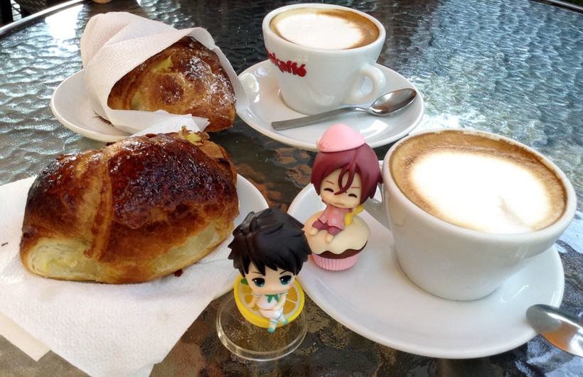 В кафе вас ждет разнообразие круассанов, которое вы не увидите утром на завтраке в гостинице. Главное - не проспаться ;) В Италии день начинается рано, с 6 утра.