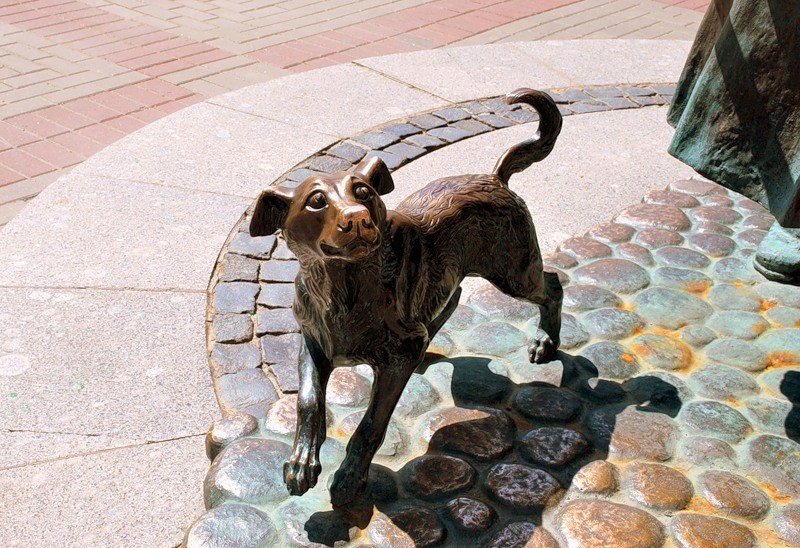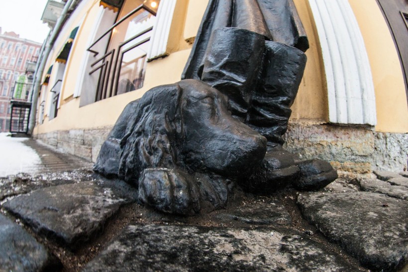 Когда у вас самих есть собака, то подобные памятники особенно притягивают ваше внимание. В Санкт-Петербурге мы нашли у ресторана «Два Му» трогательное бронзовое посвящение тургеневской Муму.