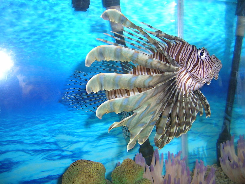 Часть их расположена под открытым небом, и в них можно поплавать рядом с рыбками , если вы , конечно не боитесь прикосновения скользкого живого существа. В центре расположен аквариум под крышей, в котором проложен прозрачный тоннель, позволяющий посетителям увидеть всех обитателей подводного мира. Можно увидеть почти 3 тысячи обитателей подводного мира.