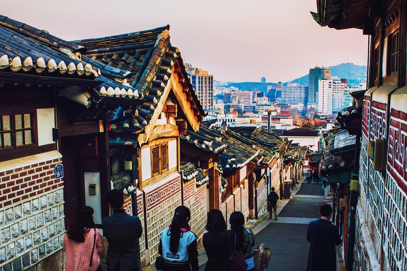 - Фольклорная деревня Букчхон. Вам стоит прогуляться по старинному корейскому месту, где для вас откроются особенности национальной жизни Сеула. Корейские дома, традиционные улочки, само-то чтобы проникнуть корейской культурой. С некоторых мест открывается незабываемый вид на Сеул. С Аэропорт доехать до центра города на автобусе, и со станции метро Seuol Station (синяя ветка № 1) доехать до станции Jongno 3(sam)-ga и перейти на другую ветку (оранжевая № 3) и одну остановку ехать до Anguk. Выходите с метро, переходите дорогу в сторону кафе Баскин Робинс и идете по улице. Проходя по улице, вы увидите старинные домики.