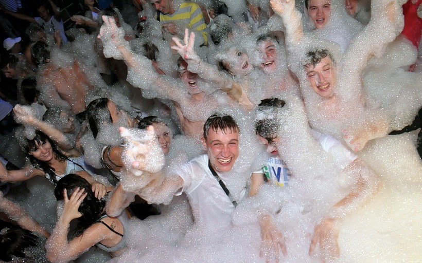 Я побывала на первой в жизни (надеюсь, не последней!) пенной вечеринке в Disco Club Lazur. Мокро, но безумно весело. Мой парень не вовремя решил что-то прокричать вверх, общий друг кинул в него немножко пены. Дима отплевывался минут десять, как котенок шерстью :)