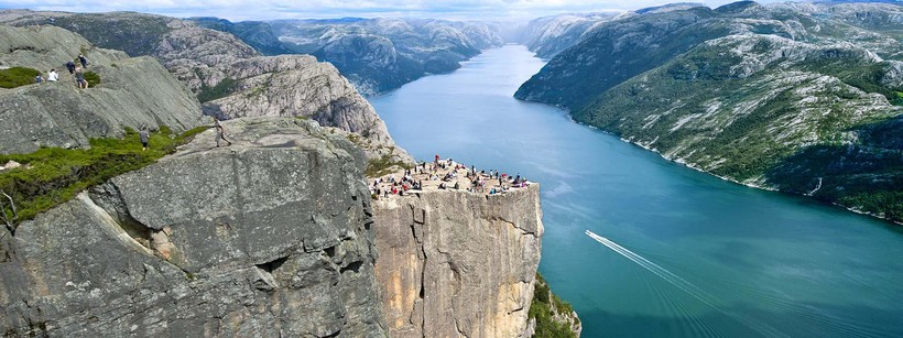 - Прекестулен. Это лучшая видовая площадка на планете - именно так многие люди характеризуют скалу - Прекестулен. На самом деле это огромный утёс нависающий над водной гладью Люсе-фьорда. В основании Прекестулена, есть довольно заметная трещина и однажды этот гигант рухнет вниз, но пока его прямоугольная форма и ровная поверхность позволяют наслаждаться видом огромного и красивого Люсе-фиорда. Вид, который открывается с утёса Прекестулен, вы забудете еще не скоро - есть вероятность , что никогда. Если при слове "Норвегия" - вы представляете себе фьорды, то вам сюда.