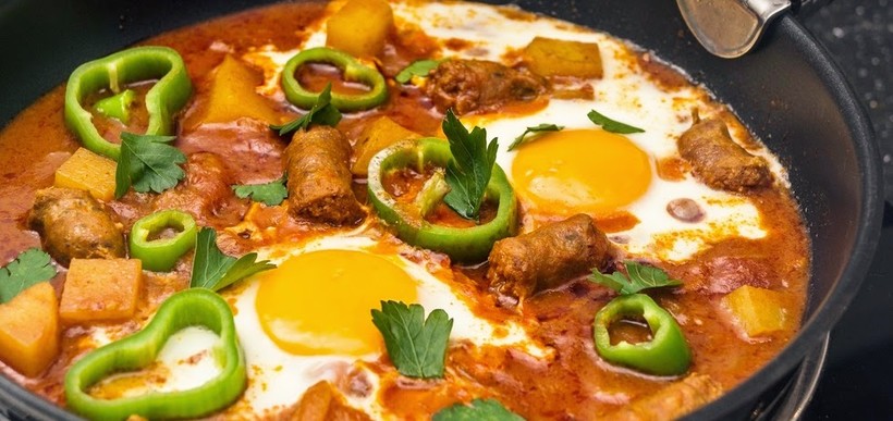 Еще очень вкусное блюдо - ожжа (в меню пишут, как "ojja"). Это соус, приготавляемый на основе томатной пасты и овощей. Его предлагают с морепродуктами, мясом или местными сосисками (называется "мергез"). Сразу предупреждаю: он очень и очень острый. Есть почти невозможно, но вкусно!